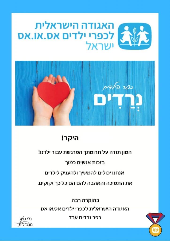 לאחר מתן התרומה, התלמיד יקבל מכתב תודה רשמי על תרומתו, מהמוסד שהוא בחר".