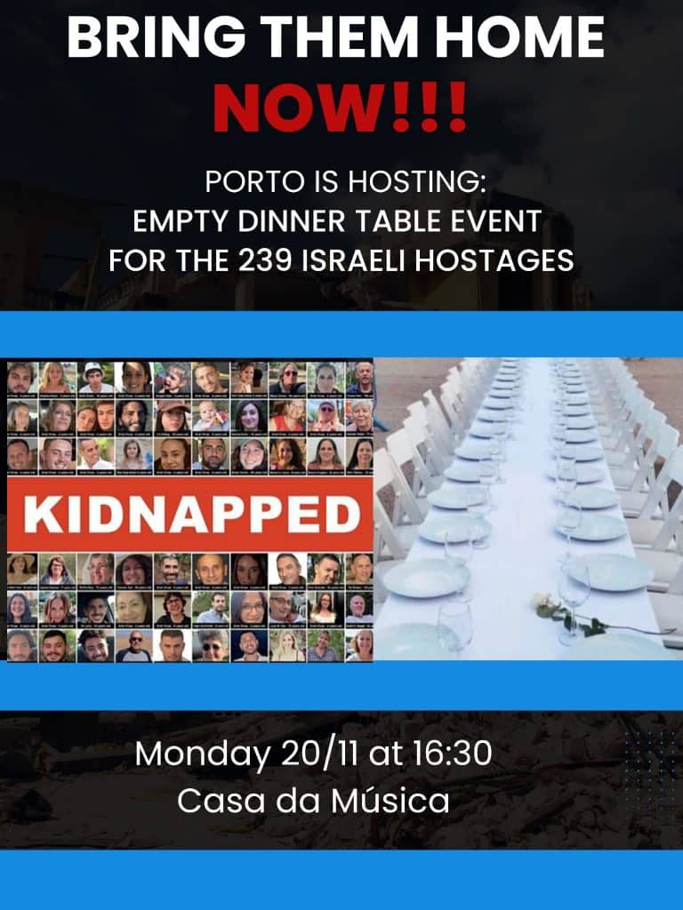 הנוכחות של כולם חשובה. נא הפיצו לחברים והגיעו לאחד משני האירועים שמתקיימים היום בליסבון ובפורטו.